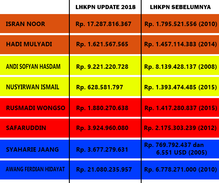 BERIKUT DATA LHKPN BERDASARKAN PASLON CAGUB-CAWAGUB