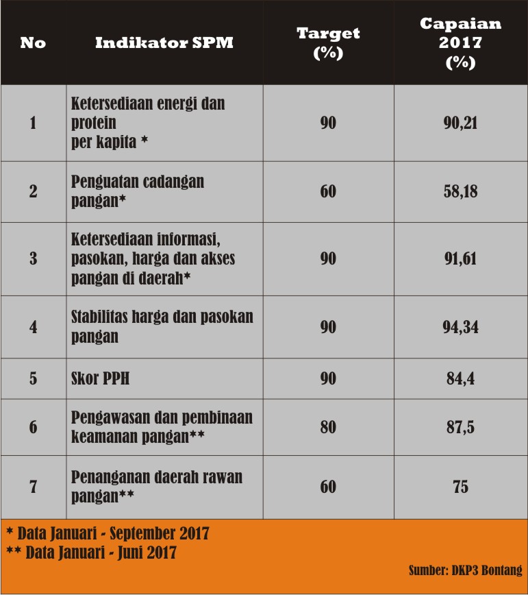 “Itulah tujuh indikator SPM ketahanan pangan, dan datanya ada pada lintas sektor. Diantaranya dari dinas kita sendiri ketahanan pangan, dinas kesehatan, dinas perindakop dan UNKM, perhubungan, BPM, serta dinas terkait lainnya, ” ungkapnya.