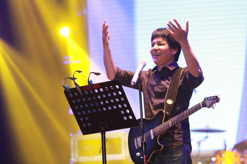 Direktur Utama PT Pupuk Indonesia (Persero) Aas Asikin Idat saat menyumbangkan lagu di acara penutupan HUT PKT ke-40.