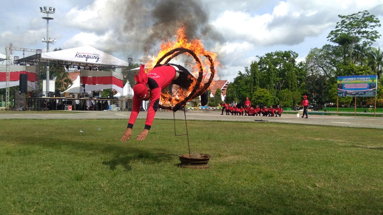 Antraksi lompat harimau ke lingkaran api yang dilakukan anggota Satpam binaan Polres Bone