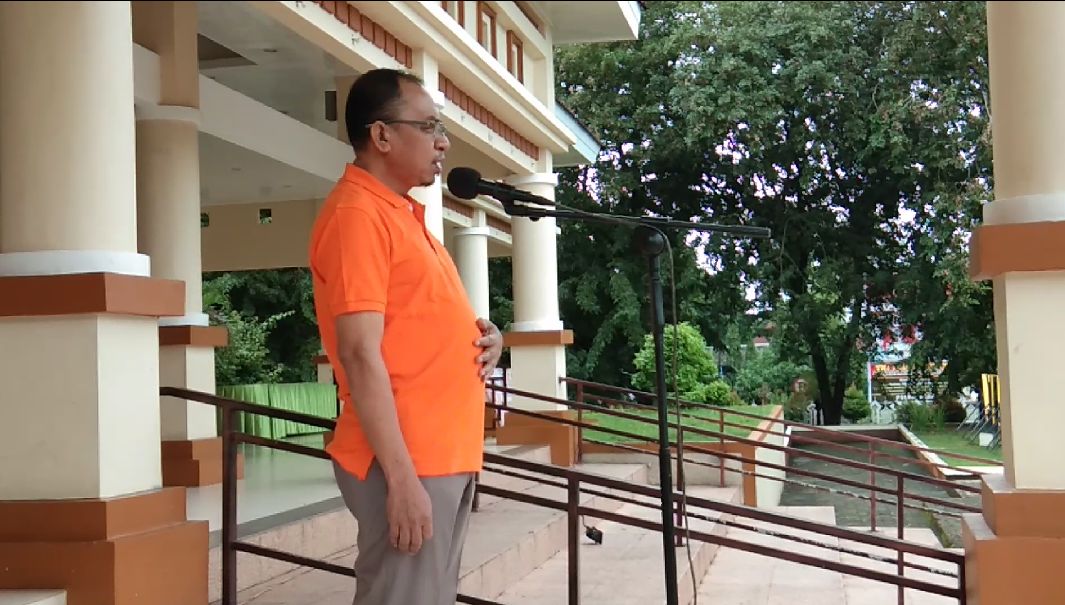 Ketua Bawaslu Sulsel Laode Arumahi saat memimpil apel siaga di Lapangan Merdeka Bone.