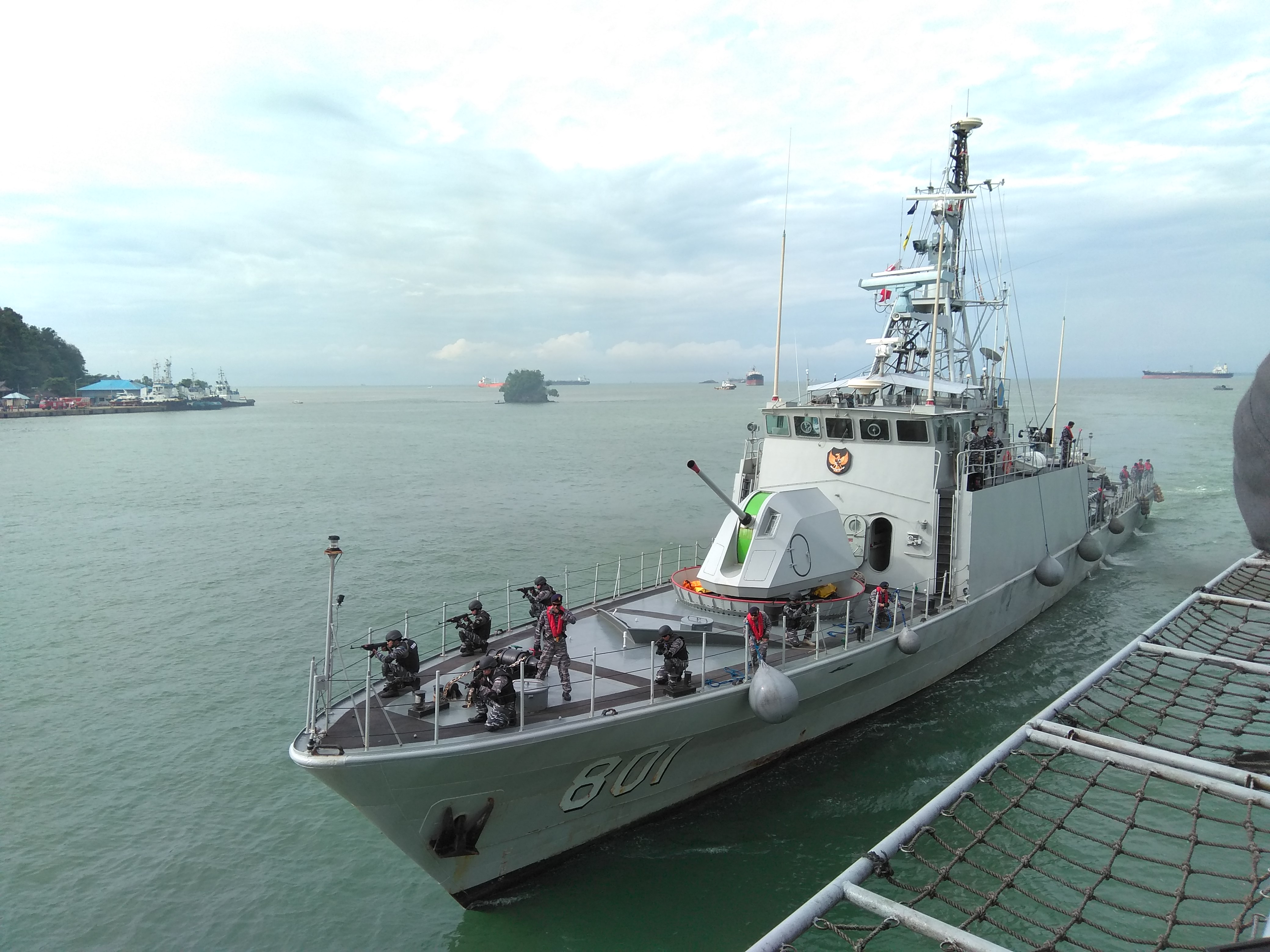 Sementara 4 KRI, yaitu KRI Lambung Mangkurat-374, KRI Hasan Basri-382, KRI Pandrong-801dan KRI Frans Kaisiepo-368 membuat formasi mengelilingi kapal sandera.