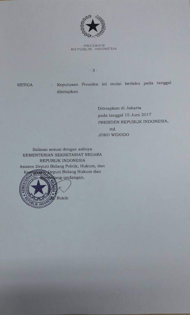 Keputusan resmi itu diteken Presiden Joko Widodo lewat Keputusan Presiden Nomor 18 Tahun 2017 tentang Cuti Bersama Tahun 2017 pada tanggal 15 Juni 2017. Keppres ini telah dimuat di situs Sekretariat Negara pada Kamis (15/6/2017).