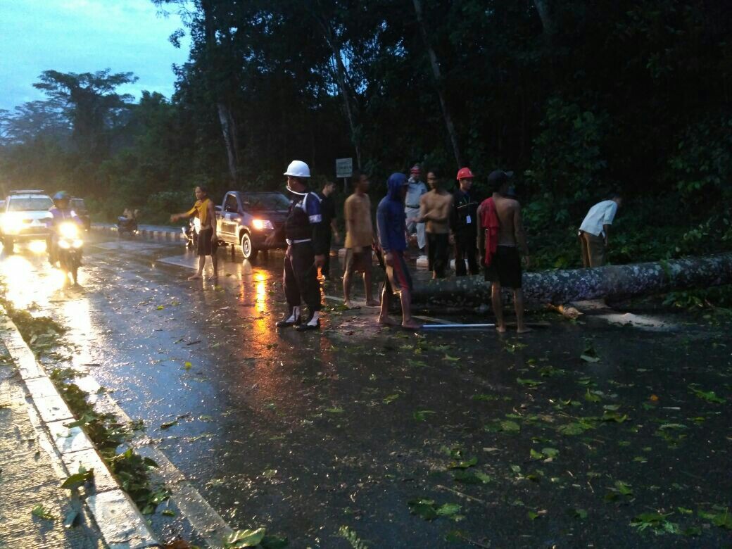 Disebutkan Rusmin, pohon tumbang ini berukuran cukup besar dengan ketinggian berkisar 10 meter lebih. Sebab pada saat terlentang, pohon tersebut menutupi dua ruas jalan.