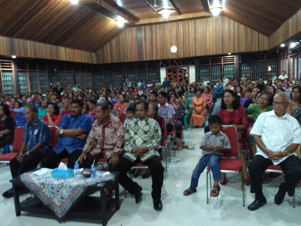 EKSPOSKALTIM, Bontang - Ratusan warga Kelurahan Kanaan, Kecamatan Bontang Barat mengikuti perayaan Natal dengan khidmat di Gedung Serba Guna Gereja Toraja Kelurahan Kanaan, Selasa (5/12) malam tadi.
