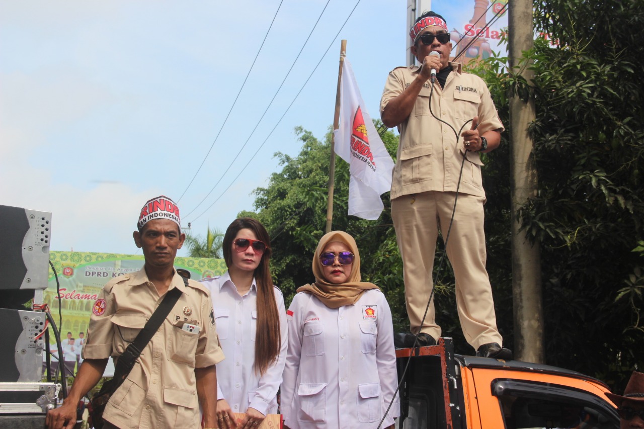 Simpatisan Partai Gerindra menyampaikan orasi di Kantor DPRD Samarinda. (Muslim/EKSPOSKaltim)