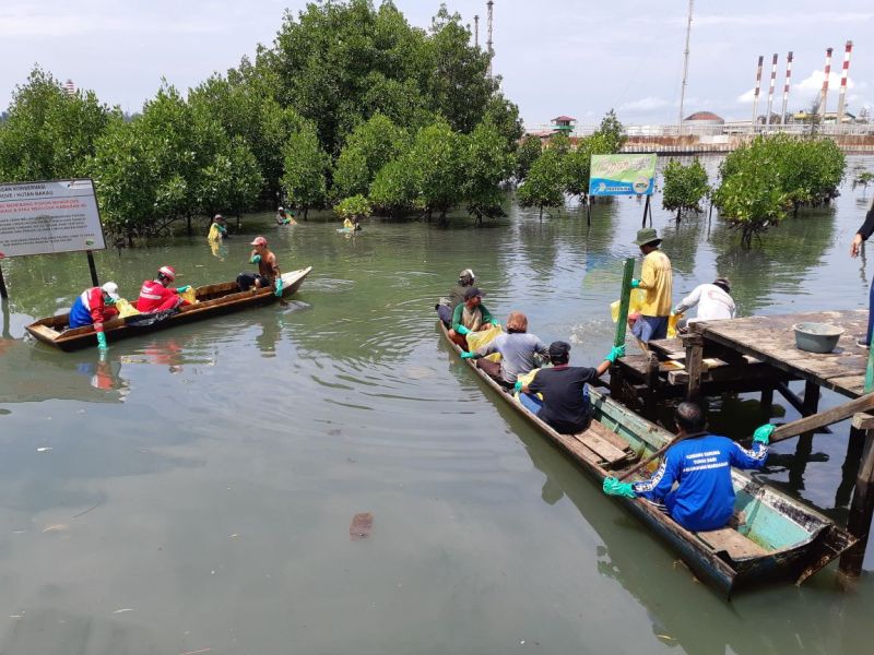 "Sebagian ada yang menampung sampah dalam plastik di atas perahu, sebagian lainnya menyisir sampah di sela-sela akar mangrove. Sampah yang terkumpul dibawa ke bank sampah," imbuh Ride, Lurah Margasari, Balikpapan Barat.