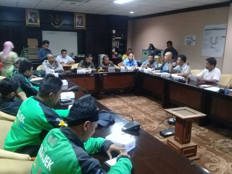 Anggota Komisi I DPRD Kaltim Jahidin menerima perwakilan ojek online di lantai III Gedung D DPRD Kaltim. Dari aspirasi mereka, Jahidin mengaku merasa prihatin dan dapat merasakan apa yang dirasakan oleh para driver ojek online ini.