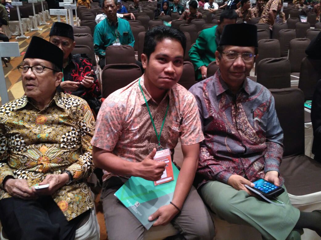Fungsionaris KAHMI Bone Sulsel, Andi Seldy Mappasala (tengah) berfoto bersama dengan tokoh nasional yang juga alumni HMI Akbar Tanjung (kiri) dan Mahfud MD (kanan). (foto:ist)