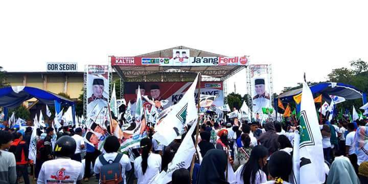 Suasana kampanye akbar paslon Jaang-Ferdi di Gor Segiri, Kota Samarinda, Rabu (20/6).