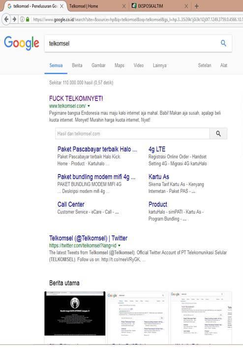 Sebagaimana diketahui, Judul situs Telkomsel berubah menjadi FUCK TELKOMNYET!. Sementara dibawahnya tertulis: Pegimane bangsa Endonesia mau maju kalo internet aja mahal. Babi! Makan aja susah, apalagi beli kuota internet. Monyet! Murahin harga kuota internet, Nyet!